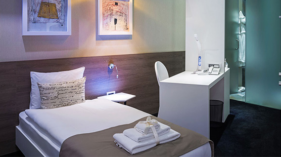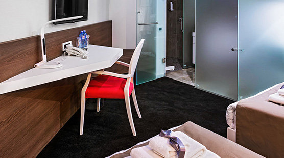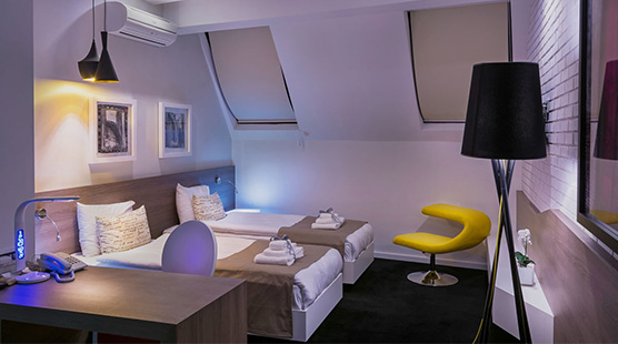 Overlooking the city centre, this room offers all it takes for a good night sleep and rest. Subtle modern décor features a work desk with wireless internet, minibar, flat screen TV, in-room safe, comfy bed. A walk-in shower and air conditioning will make you stay even more comfortable.
